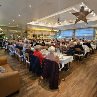 Auch der Nikolaus ließ es sich nicht nehmen, persönlich vorbeizuschauen. Das Christkind hingegen war dieses Jahr ein bisschen angeschlagen und musste – sehr zum Vergnügen aller – stilecht im Bollerwagen hereingefahren werden. Die Geschichten und Anekdoten, die daraufhin vorgetragen wurden, waren umso spektakulärer. Da bekam so mancher liebevoll einen Spruch verpasst – und alle hatten ihren Heidenspaß dabei. Als ein kleiner-großer Blumenstrauß überreicht wurde, erhellte sich auch das Gesicht des Christkinds wieder – und das Adventsglück war für alle Beteiligten perfekt.